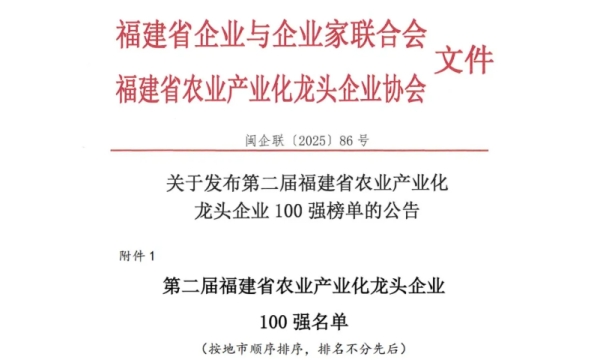 • ag真人平台官方集团登榜“第二届福建省农业产业化龙头企业100强榜单”